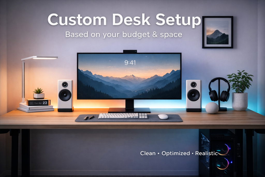 I design your ideal desk setup based on your space, budget, and style — clean, functional and realistic.